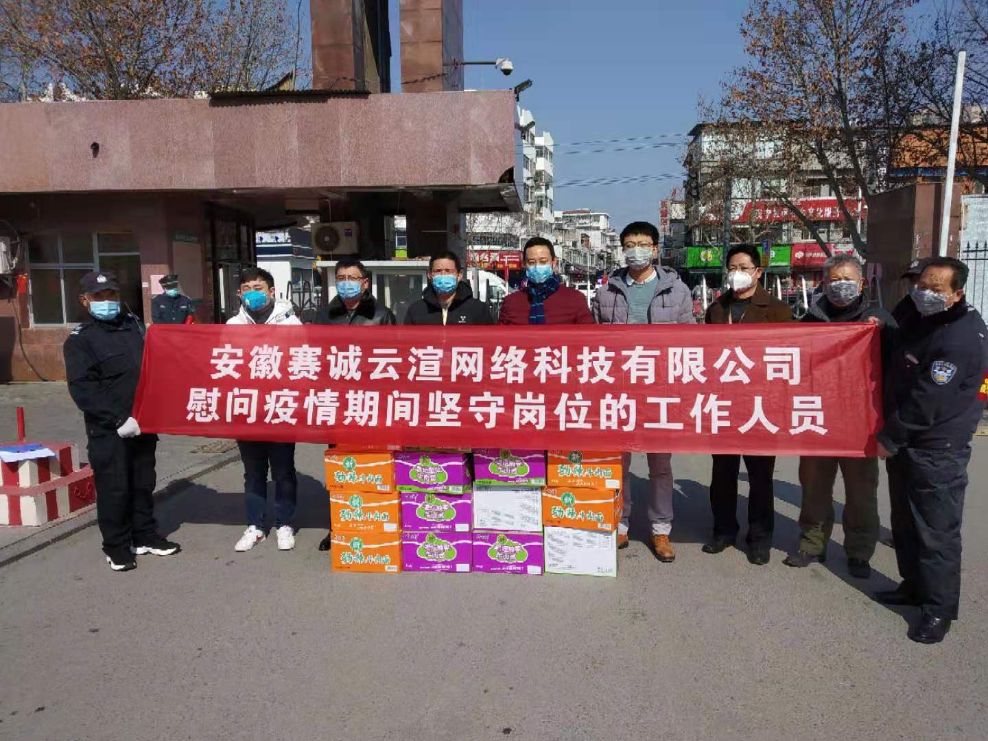 2月12日上午,市青年企业家协会会员、安徽赛诚云渲网络科技有限公司董事长王江生一行三人到宿州学院汴河路校区,慰问坚守在我校疫情防控一线工作人员,并为他们捐赠食品物资。校防控办、保卫处、科技处相关人员接受了捐赠。