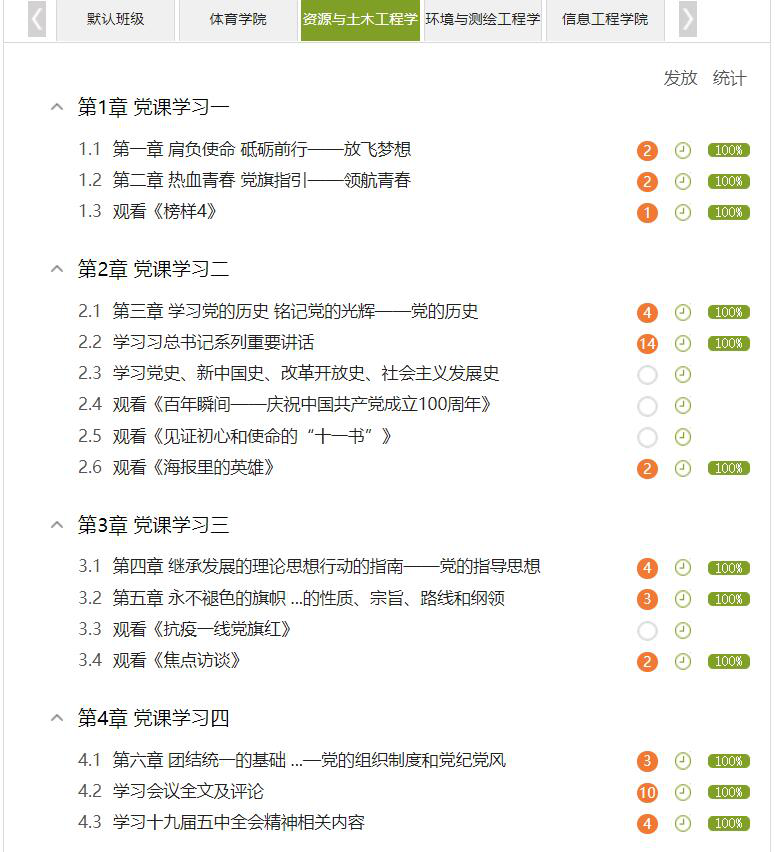 加强政治理论学习,增强党性修养。课程通过PPT课件、视频讲座、微党课、延伸阅读、动画党课等形式帮助学员加强政治理论学习。全体学员通过学习《解读十九届五中全会精神》《党的历史》《党的义务和权利》《党的性质、宗旨、路线和纲领》等专题党课,深刻了解党的基本知识;通过学习《新时期共产党员的党性修养》《党风廉政建设专题党课》等内容,观看《永远在路上》,保持和发展党的先进性与纯洁性;通过学习《中国共产党章程》、《习近平谈治国理政》第三卷等内容,更加坚定共产主义信念,增强了政治素质和政治敏锐性。