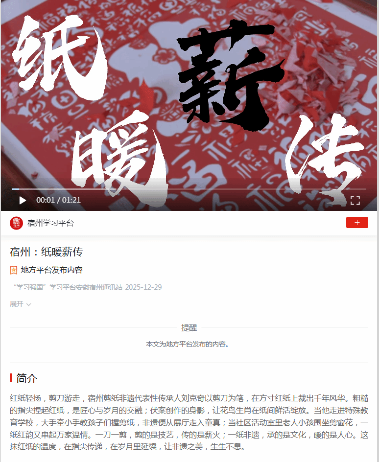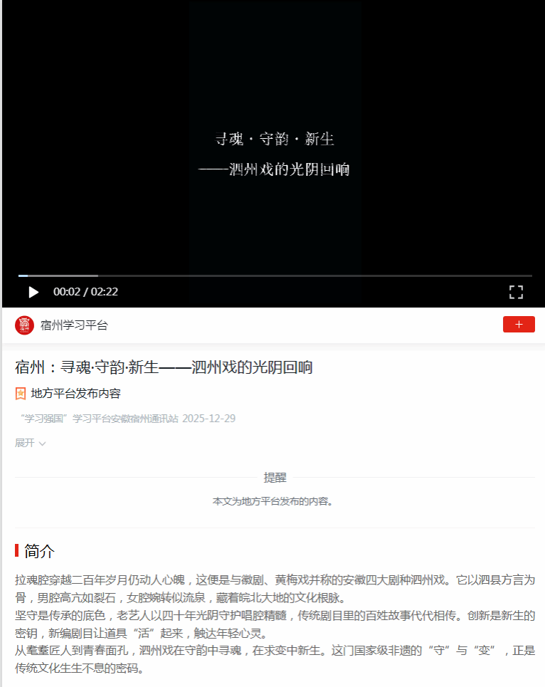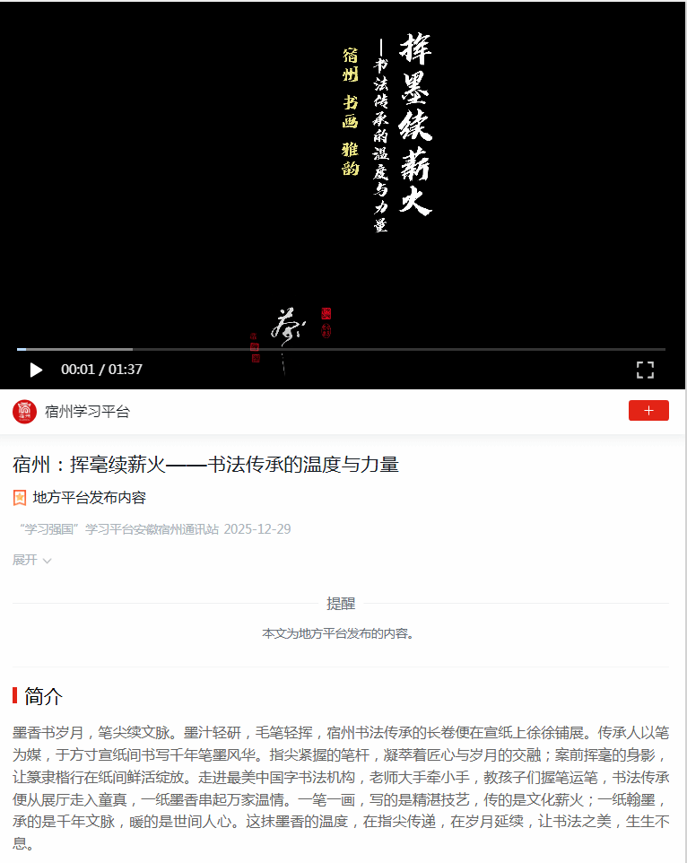 12月29日,由我校文传学院李雅琪、徐会老师联合指导,2024级新闻学专业学生创作的三部优秀原创短视频正式登陆“学习强国”宿州学习平台。