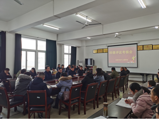 为贯彻落实《中共中央、国务院关于全面深化新时代教师队伍建设改革的意见》精神,切实加强教师师德建设,根据《宿州学院师德年度评议办法》文件(党教工字〔2019〕1号),机电学院于2020年1月14日在工科C楼三楼大会议室召开2019年师德考核评议会,全体教职工参会,会议由党总支书记刘超主持。