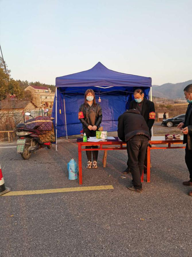 父女齐上阵,共同抗“疫”情。在安徽省铜陵市枞阳县雨坛镇高峰村,16级音乐学2班的曹含笑和父亲共同志愿服务在抗“疫”第一线。父女俩积极配合当地政府和村干部对来往的车辆进行严格检查、劝导,对所有过往车辆严格登记并对人员进行体温测量。