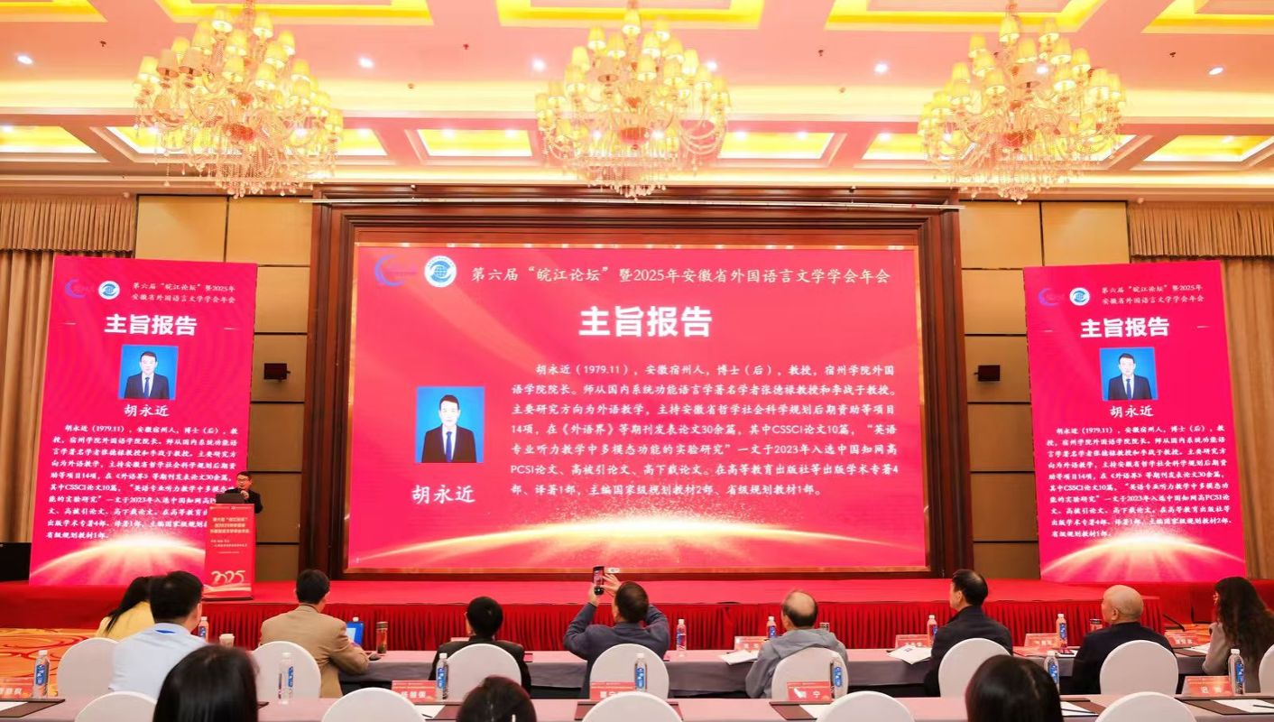 11月14日—16日,安徽省外文学会第六届“皖江论坛”暨安徽省外文学会年会在合肥举行。省内各高校外语教学相关负责人、合作企业单位代表以及外文学会会员等300余名代表齐聚一堂,共话外语学科建设。我校外国语学院党委副书记、院长胡永近,学院骨干教师代表参加大会,并作学术报告。
