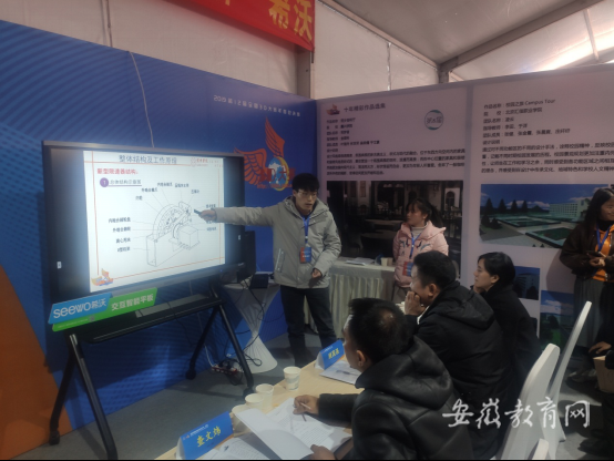 宿州学院由机械与电子工程学院院长郭焕银带队,朱光、许海峰、李强、王庆阳、高梦迪等指导老师一同前往比赛现场。在全国总决赛中,参赛学生沉着冷静,凭借新颖独特的设计、熟练的展示,精美专业的作品图片、视频,参数合理的三维数据模型等,良好的作品创意,以及对原理说明、设计思路清晰讲解,设计任务流程完整展示、实物模型展示等均表现了较好的专业水平和精神风貌,赢得了评审专家的认可。最终由李强、朱光老师指导的“墨丘利2”团队(金矿、杨宇凌、时晨星、孔令超、白洋威)荣获全国一等奖;王庆阳、许海峰老师指导的“创新自己”团队(楚庆庆、宋志斌、张梦龙、徐皖生、吴洪军)荣获全国二等奖。