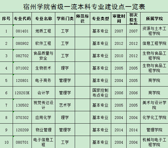 自2019年教育部启动一流本科专业建设“双万计划”以来,宿州学院为持续提升本科人才培养质量,主动对标新时代高等教育的新要求,坚持“地方性、应用型”办学定位,落实立德树人根本任务,始终关注专业建设质量。根据《教育部办公厅关于实施一流本科专业建设“双万计划”的通知》要求,学院认真梳理专业建设情况、调整专业结构、加强顶层设计,教务处深入二级学院充分调研、摸准专业脉络、认真组织,各二级学院踊跃申报、积极筹备、反复打磨,获得国家级一流本科专业建设点是对学院专业建设水平不断提升的肯定。
