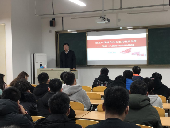 2019年12月20日下午,一场别开生面的思政课在宿州学院管理学院的C215展开,由宿州学院副校长张英彦教授主讲“坚定中国特色社会主义制度自信——党的十九届四中全会精神解读”,带领19级工程管理班同学深入学习党的十九届四中全会精神。
