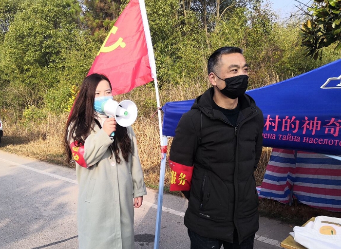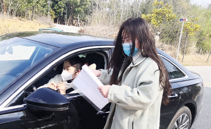 外国语学院大学生志愿者积极响应号召,不畏疫情、勇于担当,2018级英语3班夏琴同学在芜湖市花桥镇永兴村担任志愿服务工作进行疫情防护宣传工作,并给来往的车辆进行登记和体温测量工作;2019级英语1班罗梦同学在马鞍山市雨花社区进行社区防控登记。