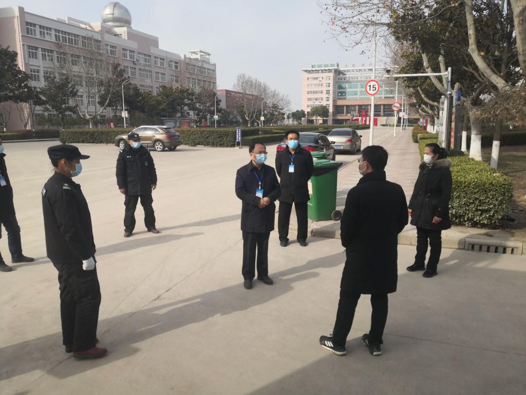 2月19日上午,校党委书记陈国龙、副校长李亮到教育园区校区检查疫情防控工作,并对坚守在疫情防控一线的工作人员进行慰问。校疫情防控工作领导小组办公室主任李高、保卫处副处长孙裕金陪同检查。