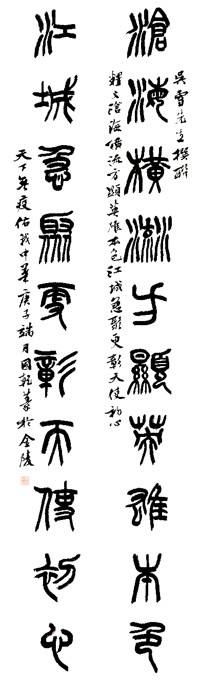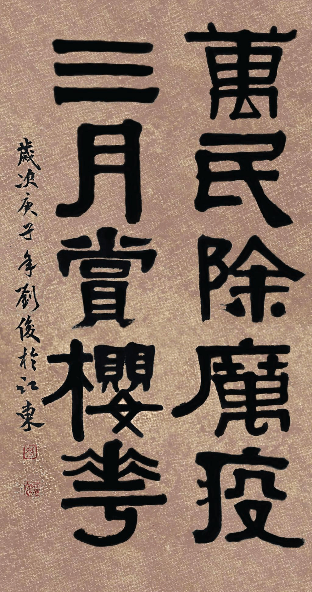 释文:沧海横流方显英雄本色,江城急聚更彰天使初心。