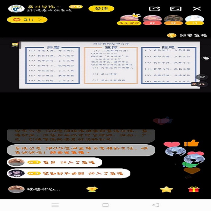 从2月份开始,学生团体联合会组织多家社团,发挥各自专业优势,为学生开设云课堂系列直播课程,与身处全国各地的宿院同学们“云”上见面,为同学们送上各自的特长项目教学,真正实现“停课不停学,开学不延期”。其中,绘画艺术研究会、演讲与口才协会、青年书法协会、天籁吉他社四家社团均为每周固定直播。绘画艺术研究会已进行了十三次直播,分为三个系列:油画的世界、素描基础、漫画教程;演讲与口才协会进行了九次直播,分为演讲技巧、辩论技巧、人际关系与沟通技巧三个系列;青年书法协会的书法五种书体及楷书入门系列进行了九次直播;天籁吉他社也进行了八次直播。截至目前,共有十四家社团进行了53场直播,观看直播人数共计42438人次,点赞数129168次。
