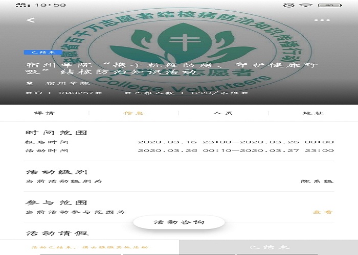 2020年3月24日是第25个“世界防治结核病日”。机电学院组织爱·公益志愿者小队开展了“携手抗疫防痨、守护健康呼吸”结核防治知识活动。活动分为在线答题、海报宣传两个部分。活动累计参与人数近1500人,让大家增强了结核病防护意识和能力,营造了积极参与结核病防治的良好氛围。