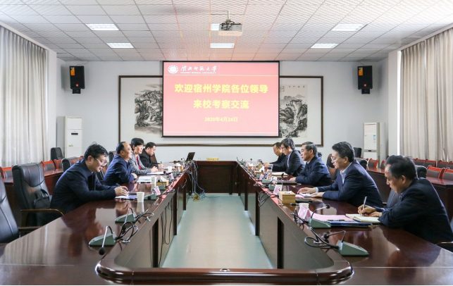 陈国龙首先对淮北师范大学长期以来对宿州学院工作的支持与帮助表示感谢,他介绍了我校近年来在人才培养、科学研究、服务地方、学科建设等方面的基本情况及取得的成绩。他表示,淮北师范大学和宿州学院同是坐落在皖北的两所高校,多年来一直有着良好的互动,在我校积极推动新增硕士学位授予单位立项建设之际,希望能够多学习借鉴淮北师范大学的宝贵经验。张莉回顾了两校前期联合培养研究生的历史,介绍了我校立项建设授权学科基本情况,希望淮北师范大学能在相关学科联合培养硕士研究生方面多给予支持,并表示在今后的合作中将进一步完善相关政策,严格做好导师推荐、研究生培养等工作。