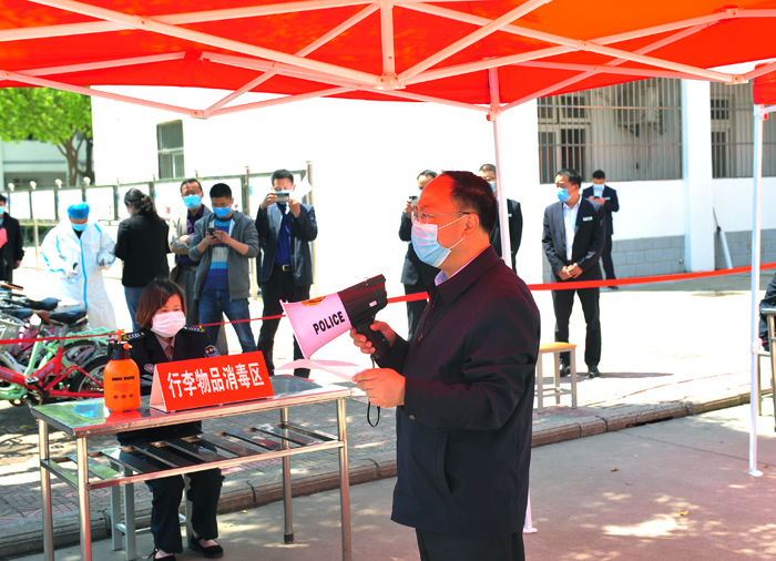 校领导全程观摩应急防控演练,对演练过程中发现的问题、存在的漏洞给予现场指导,确保各项工作、各个环节万无一失,坚决维护好广大师生员工的生命安全和身体健康。整个演练过程按照方案以实战的要求逐项进行,有条不紊,圆满完成了既定的各项演练内容。演练结束后,陈国龙在讲话中指出,本次演练精心组织,安排周密,演练了校园内可能出现的突发情况,达到了预期目的。他强调,各部门要认真总结这次实战演练的经验,进一步理顺工作流程,进一步明确岗位职责,进一步完善细节,为我校做好学生返校复学工作奠定坚实的基础,为打赢学校疫情防控阻击战作出自己的贡献。