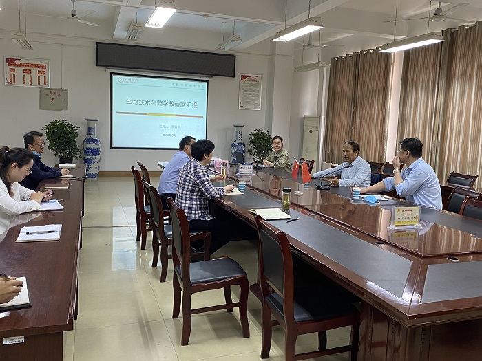 校领导分别听取了生工学院党总支书记赵亮关于生工学院2019年党建发展工作汇报,教研室主任李秀丽关于生物技术与药学教研室建设汇报,现场考察了食品深加工实训室、食品分析测试中心等校内实践教学基地。各位领导认真听取了汇报和大家的发言,充分肯定了学院2019年的发展成效和领导班子开展的亮点工作,就教研室发展、学科建设、实训室建设等相关问题做了一一回应。