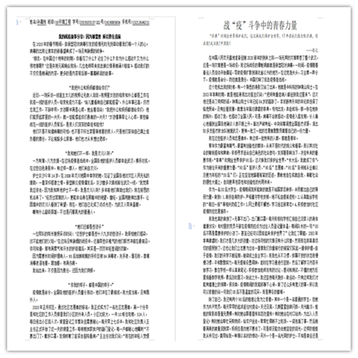 此次活动展现了疫情期间我校广大学生群体脚踏实地,勇担使命,主动作为的精神风貌。从参与者们分享的真实故事中,我们看到了广大青年人良好的生活习惯与理性平和的心态,更看到了他们朝气蓬勃,昂扬向上的心理世界和生活态度。衷心祝愿他们将来能有更好的发展!