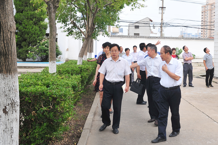 7月13日下午,校党委书记汪刘送,党委副书记、校长张莉,党委副书记蔡之让,副校长李亮、梁琦带领办公室、宣传部、后勤管理处、基建处、保卫处、团委等部门负责人深入汴河路校区检查文明创建工作。