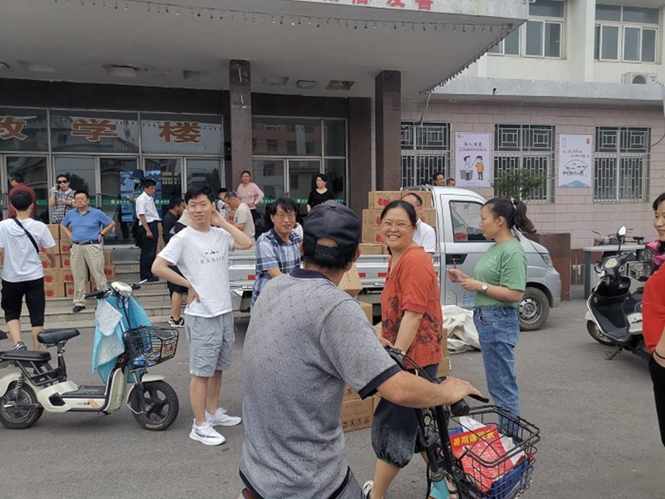 7月17日上午,我校开展帮扶村农副产品助销活动,萧县庄里乡城阳村农副产品助销活动在汴河路校区如期举行。近两百名教职员工踊跃参加活动,自愿认购来自城阳村的特色水果——蟠桃。虽然天空阴沉,暴雨欲来,仍然阻挡不住教职工消费扶贫的热情,你一箱我两箱,一车蟠桃瞬间抢购一空,贫困户的脸上洋溢着笑容。