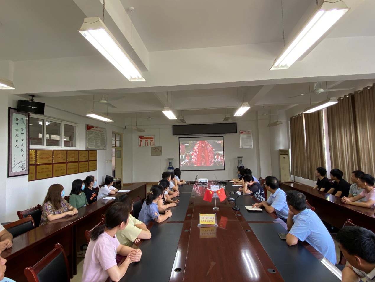 在校校领导张莉、李亮、梁琦、张英彦、王俊,各职能部门负责人,教师党员代表在逸夫楼第一会议室集中收看。各党总支按照学校要求,分别组织了师生收听收看。