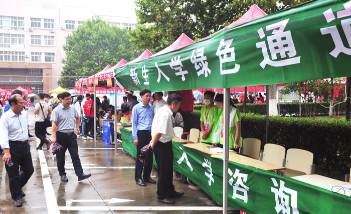 校领导高度重视“绿色通道”工作。15日上午,校党委书记汪刘送,党委副书记蔡之让,副校长李亮、张英彦,纪委书记、监察专员王俊专门来到“绿色通道”现场详细了解家庭经济困难新生入学情况。汪刘送强调,要为家庭经济困难新生提供最大的便利和最细致周全的服务,让困难学生能便捷、快速入学。