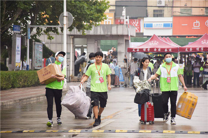 学海路上,新生报到工作有条不紊的进行着。各个二级学院党政主要负责人、辅导员及学生志愿者在各自的迎新接待点等待新生的到来。迎新师生倾力服务新生,为新生们答疑解惑、指引道路、搬运行李……新生纷纷表示,流程很清晰,服务很周到,充分感受到了老师和学长学姐们的关爱。