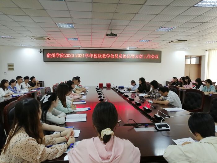 9月30日下午,校级学生教学信息员会议在东区逸夫楼第一会议室召开,质评处全体人员,教务处、学工部、后勤管理处相关领导,各教学单位(新老两届)校级学生教学信息员参加会议。会议由质评处处长唐爱华主持。