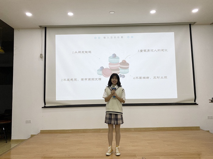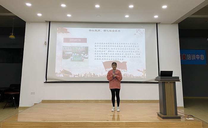 张玺皓详细介绍了大学生社会实践的重要意义、主要目的、选题分类、团队组成、活动开展、实践总结等,强调社会实践是在校大学生利用课余时间,走进社会基层,完成课题研究,更好地了解社会、服务社会,从中接受教育、提升自我的一系列有组织、有计划活动的总称。他认为,社会实践架起了学校和社会之间的桥梁,实现了校外生活与高等教育之间的无缝对接,能够有效加强和改进大学生思想教育,引导广大学生深入了解基层,增强大学生的使命感和责任感。高校学生只有走进基层,去感受,去实践,才能真正的理解、热爱这片土地。最后,张玺皓还就确定选题、如何组队、宣传报道、实践总结等方面展开了阐述。