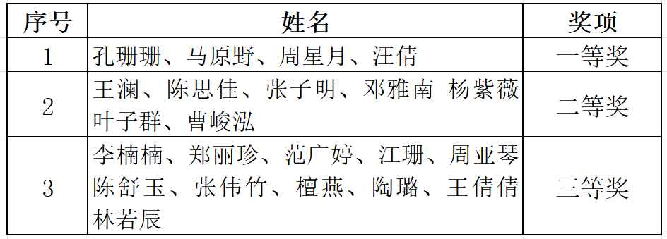 宿州学院第五届大学生财税技能大赛评选结果一览表