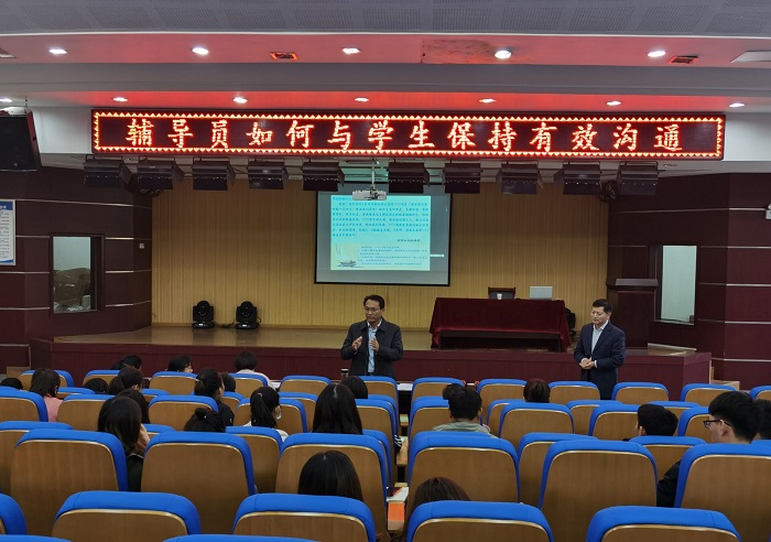 会上,马克思主义学院教育心理学教师吴枝兵应邀作了题为《辅导员如何与学生保持有效沟通》的专题讲座,讲座围绕高校辅导员工作特点、角色定位以及如何与学生保持有效沟通等几个方面深入浅出的与辅导员进行了交流,他首先指出辅导员的角色定位,辅导员具有教师和管理者的双重角色和身份,兼具教育和管理的双重职责,要求辅导员在工作中既要认真落实高校统一的办学宗旨和管理规定,也要尊重、满足和服务于学生的个体化差异发展需求,因此辅导员工作存在直接性和复杂性的特点;其次从辅导员心理辅导工作如何有效沟通方面提出了两个“一”,第一个“一”辅导员要具有发展性的心理辅导,第二个“一”是辅导员要有积极识别心理问题程序的基本能力,最后,结合案例从沟通渠道、沟通时机和选择等方面与辅导员进行了分享。