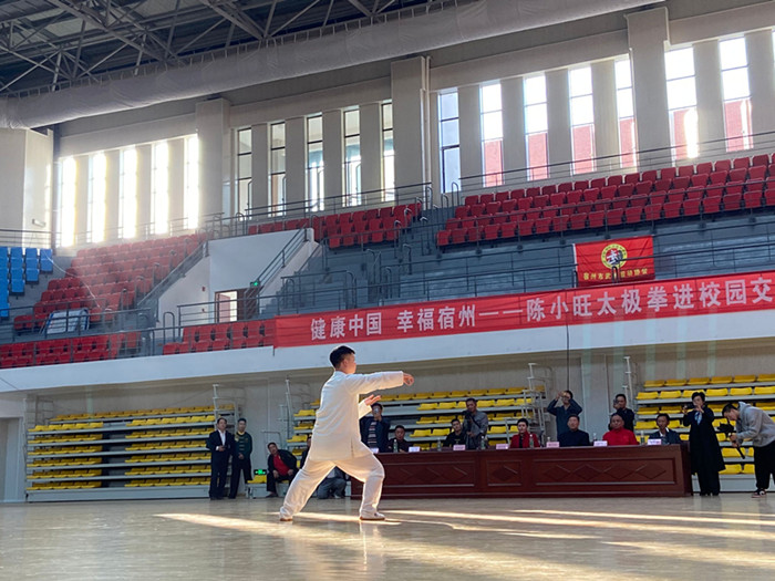 活动中,体育学院学生做了精彩的开场武术表演,接着宿州市武术协会、陈小旺大师的弟子陆续登场进行了展演,最后陈小旺大师深入浅出地给大家上了一堂精彩纷呈的武术理论课,并展示了陈氏太极的精彩段落,武术爱好者纷纷拿出手机拍照、录像留念。