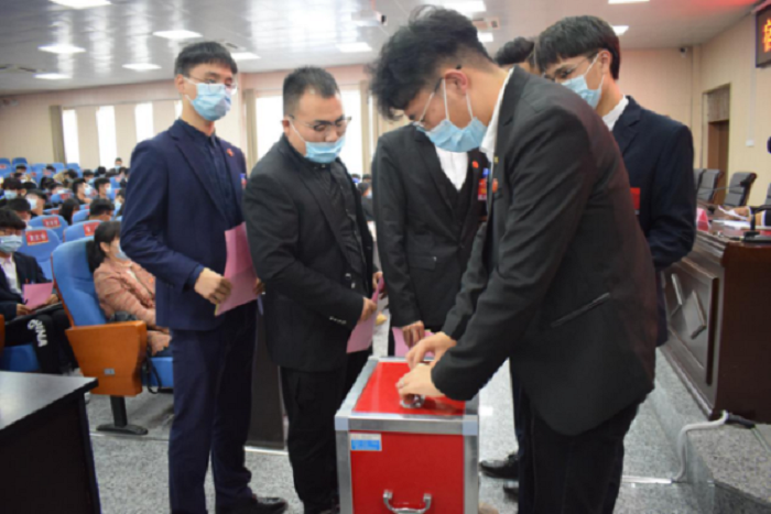 随后,大会主席团召开第二次会议,会议通报了各代表团审议情况并审议了此前讨论的一系列章程和人选。紧接着,大会第二次全体会议正式召开,会议通过了《关于宿州学院2020年学生代表大会工作报告的决议》、《宿州学院学生会章程》、《大会选举办法》和监票、计票人员名单。各位代表有序进行了投票。