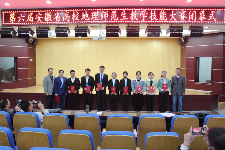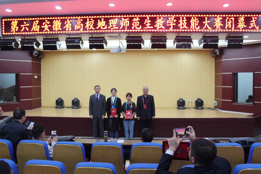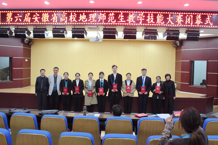赛后,专家评委进行了精彩的点评和颁奖仪式。宿州学院选派的3名选手在本次比赛中,季霖菲同学以总分第一名斩获特等奖,花景雲同学和宋澳澳同学获得一等奖的好成绩,体现了我校地理科学(师范)专业近年来积极推进师范教育改革,着力培养卓越中学地理教师所取得的成效。