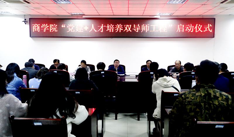 11月18日下午,商学院“党建+人才培养双导师工程”启动仪式在逸夫楼第一会议室举行,校党委书记汪刘送,副书记蔡之让,党委委员、组织部长陈啸吟出席会议。商学院党政领导班子成员徐公伟、周亚、刘红军,全体教师、学生代表参加了会议。商学院党委书记岳尧主持会议。