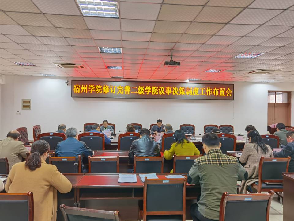 会上,蔡之让传达了《中共安徽省委组织部中共安徽省委教育工委关于转发中组部教育部党组<普通高等学校院(系)党委会会议和党政联席会议议事规则示范文本>的通知》要求;陈啸吟宣读了学校贯彻落实《示范文本》有关工作的指导意见,并全面地详细解读了《宿州学院二级学院党委会(党总支委员会)会议议事规则(修订)》(参考模板)及《宿州学院二级学院党政联席会议议事规则(修订)》(参考模板),对成立专门工作组、起草完成两个议事规则修订稿、组织部初步审核、校党委会审定、总结报告及发布实施等五个环节步骤、时间节点等作了详细说明。