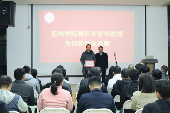 为深入贯彻落实国家、安徽省关于深化高等学校创新创业教育改革的有关文件精神,大力推进我校创新创业教育改革工作,进一步充实学校创新创业师资力量。经教务处(创新创业教育学院)、人事处、校团委等多部门协同筹备,11月21日-22日,学校校外创新创业导师聘任仪式在大学生创业园隆重举行。人事处处长张明玉、教务处(创新创业教育学院)副处长蔡若愚、人事处副处长肖亮出席聘任仪式,并为李家华教授、殷建松老师、庄建军教授颁发宿州学院创新创业导师证书。