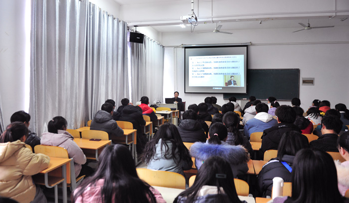 12月11日下午,宿州学院党委副书记蔡之让走进课堂,为环境与测绘工程学院学生上思政课,宣讲《强化“两个坚持”,实现“两个更大”——深入学习习近平总书记考察安徽重要讲话指示精神》。