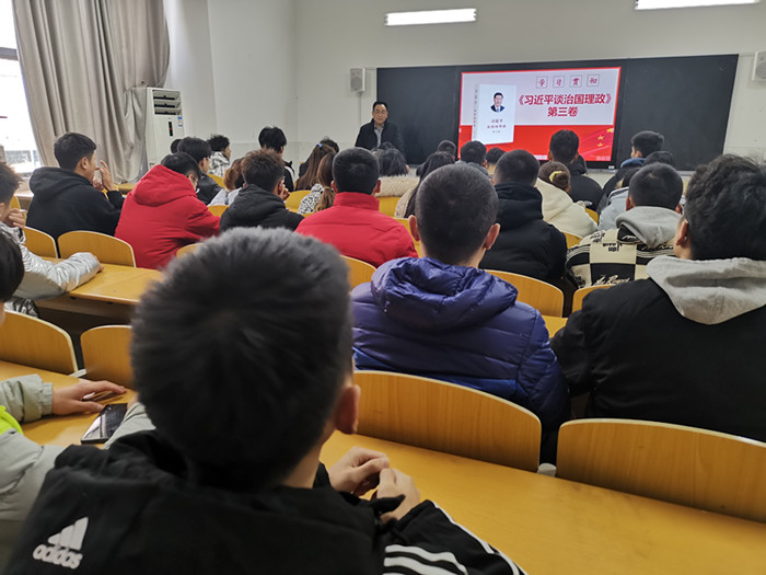 为贯彻落实宿州学院党委《关于开展习近平总书记考察安徽重要讲话指示精神、<习近平谈治国理政>第三卷、习近平总书记关于教育的重要论述宣讲活动的通知》文件精神,推动党的十九大精神和习近平新时代中国特色社会主义思想“进课堂、进学生头脑”,引导大学生深化理论认识,承担历史使命。12月14日,宿州学院党委委员、副院长李亮走进课堂,为体育学院学生宣讲《习近平谈治国理政》第三卷专题内容。