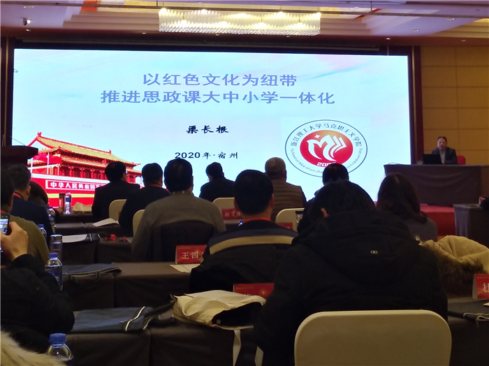 会上,浙江理工大学马克思主义学院院长渠长根教授作了题为《以红色文化为纽带推进思政课大中小学一体化》的报告。渠教授从准确认识红色文化、全面理解中国革命精神、以红色文化传承为纽带推进思政课大中小学一体化三个方面进行阐述。报告主题鲜明,站位高远,视野开阔、内涵丰富,案例生动,分析精辟,进一步加深了与会人员对红色文化的理解,对深入推进宿州市大中小学思政课一体化建设具有重要的借鉴意义。
