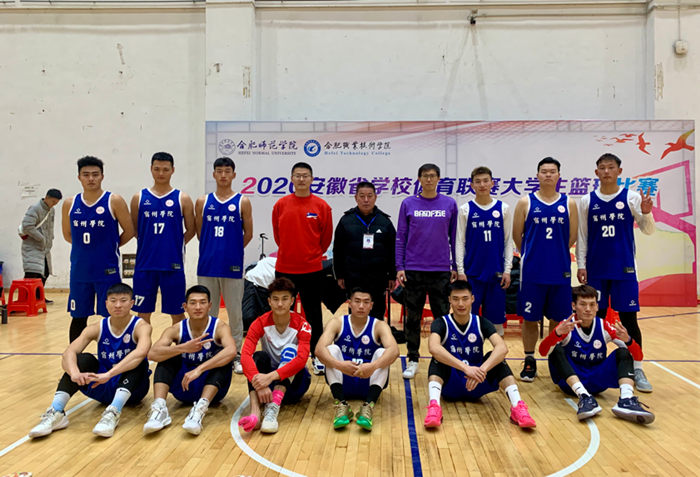2020年12月7日—12月14日,宿州学院男子篮球队参加了由安徽省教育厅、安徽省体育局主办、合肥师范学院、合肥职业技术学院承办的2020安徽省学校体育联赛大学生篮球比赛。这次比赛,宿州学院男子篮球代表队参加的是丙组(专业组)比赛,队员们都来自体育学院体育教育专业的学生,与其他学校篮球特招生、篮球对口生同场竞技。