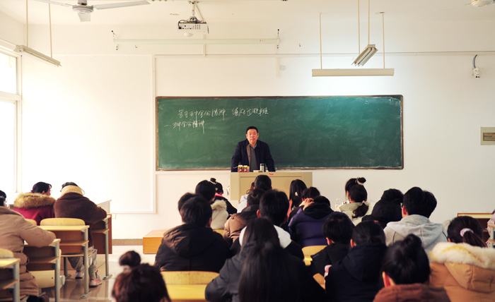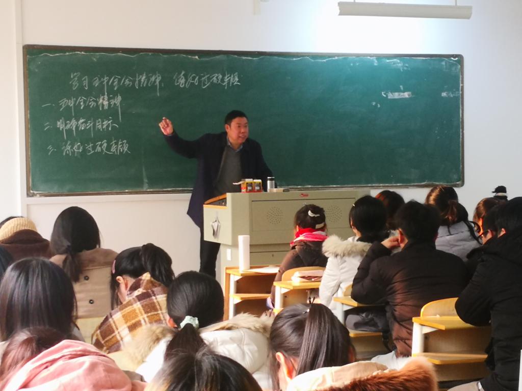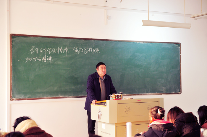 12月28日下午,宿州学院党委书记汪刘送走进课堂,在逸夫楼B109室为外国语学院学生上了题为《学习五中全会精神 练好过硬本领》的思政课。