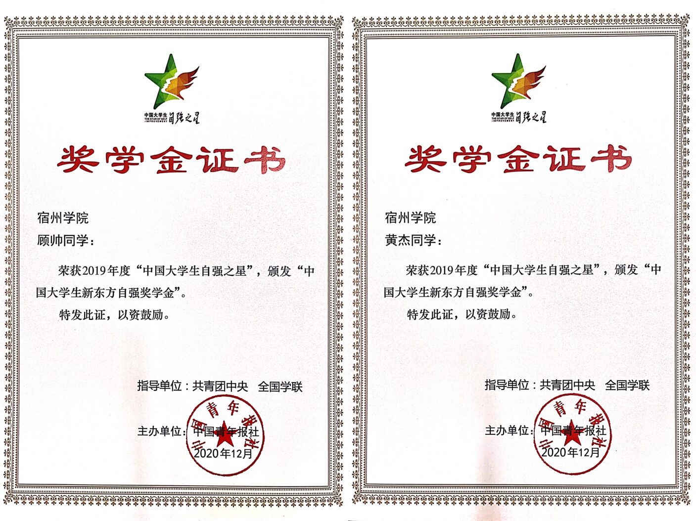 近日,由共青团中央、全国学联共同组织开展的2019年度寻“中国大学生自强之星”活动结果揭晓,我校商学院顾帅、信息工程学院黄杰2名同学荣获2019年度“中国大学生自强之星”称号。