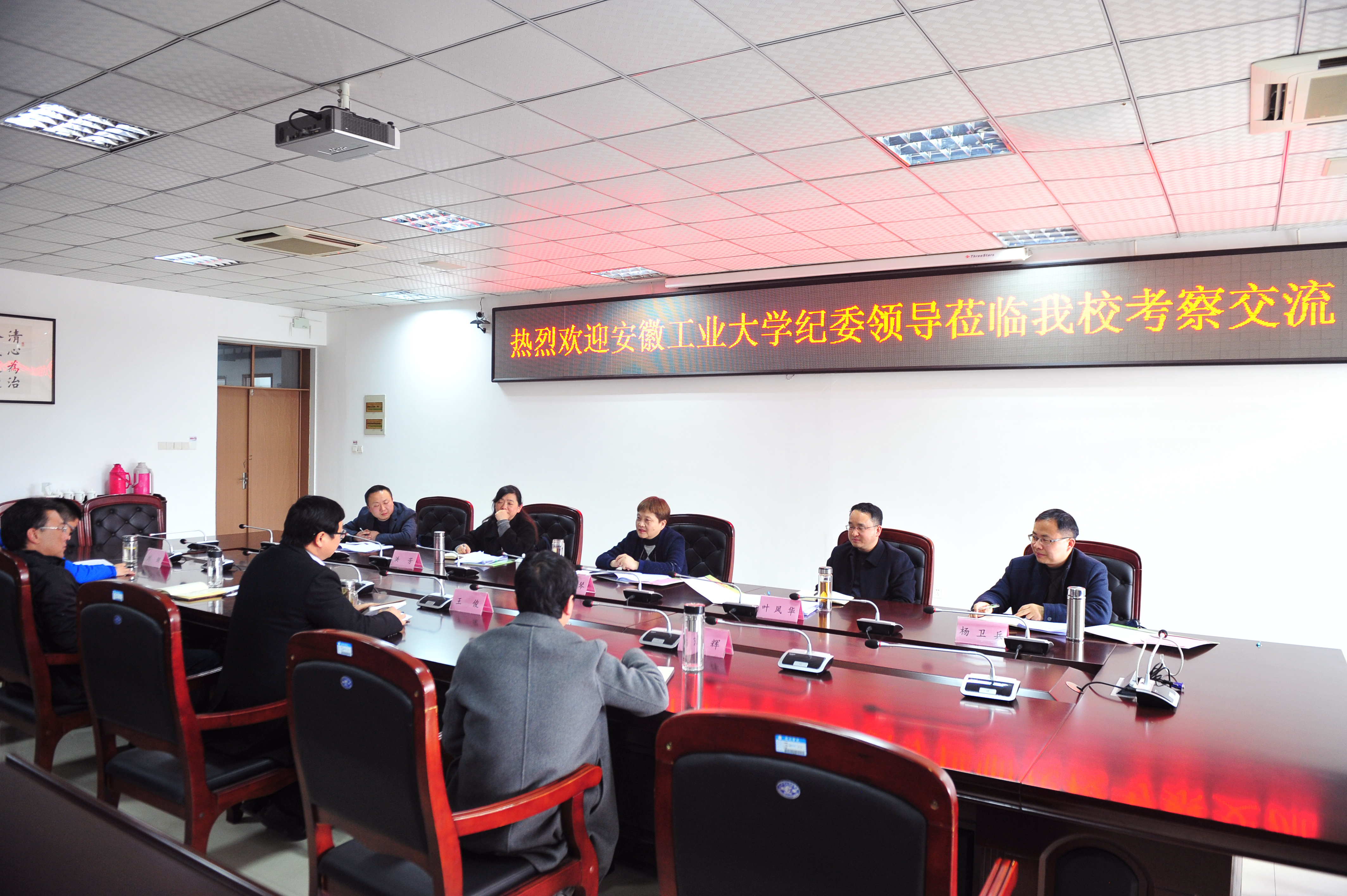 王俊书记首先代表学院向安徽工业大学纪委来校考察调研,表示热烈欢迎,并简要介绍了学院落实纪检监察体制改革任务和开展派驻监察专员试点的经验做法。他表示,学院派驻监察专员试点工作开展以来,制度建设更健全,工作流程更规范,审查调查手段更丰富,通过强化政治监督、做实日常监督和畅通校内外沟通等方式,充分发挥监督实效。希望今后进一步深化与安徽工业大学的交流合作,取长补短,共同为深化纪检监察体制改革贡献力量。