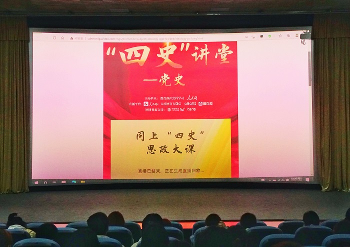 为深入贯彻落实习近平总书记关于深化思想政治理论课改革创新和“大思政课”的重大指示批示精神,全面落实习近平总书记在党史学习教育动员大会上的重要讲话精神,4月24日下午,我院组织全院学生以集体收看和个人收看相结合的形式认真观看“四史”讲堂第一堂课——“同上党史思政大课”。