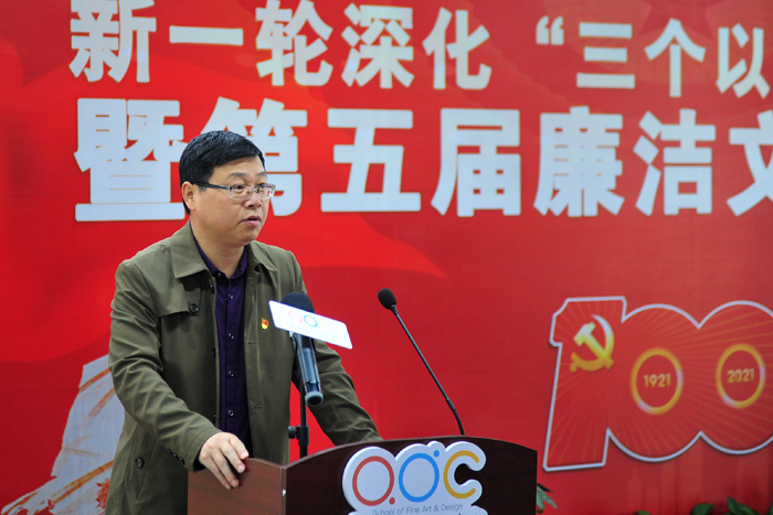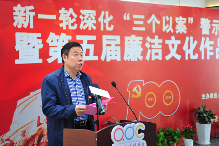 院党委书记汪刘送在致辞中指出,2021年是中国共产党建党100周年。学院开展以“家风·党风·政风”为主题的第五届廉洁文化作品展,是学校献礼中国共产党建党100周年的一项重要内容,也是深化党史学习教育,推进新一轮深化“三个以案”警示教育的重要举措,旨在弘扬廉洁文化,传播廉洁理念,培树新风正气,优化政治生态。他要求,全体党员干部,要带头深入开展党史学习教育,带头遵守党的纪律和规矩,促进学院事业健康快速发展。