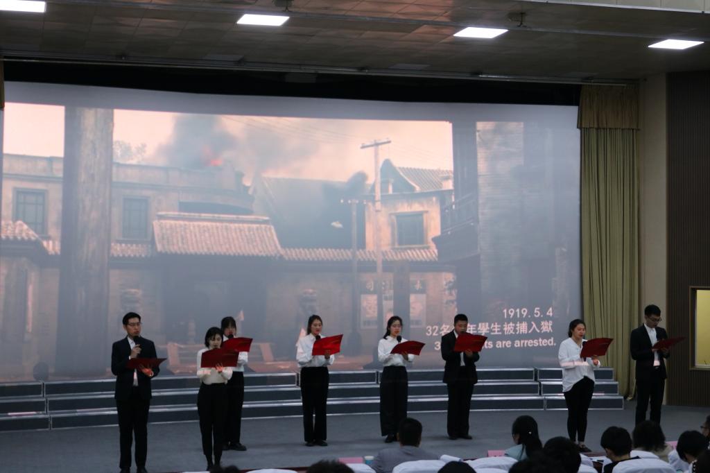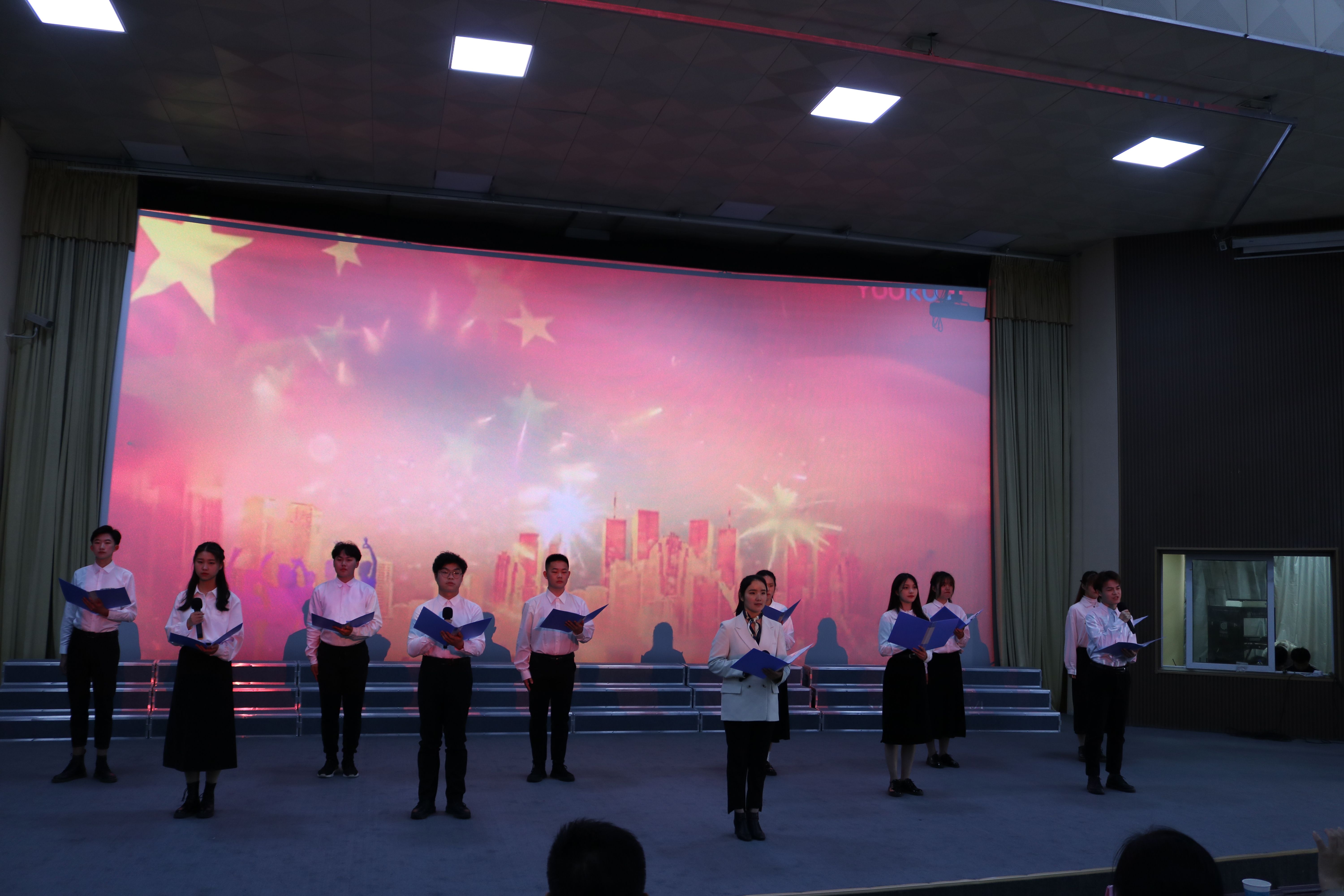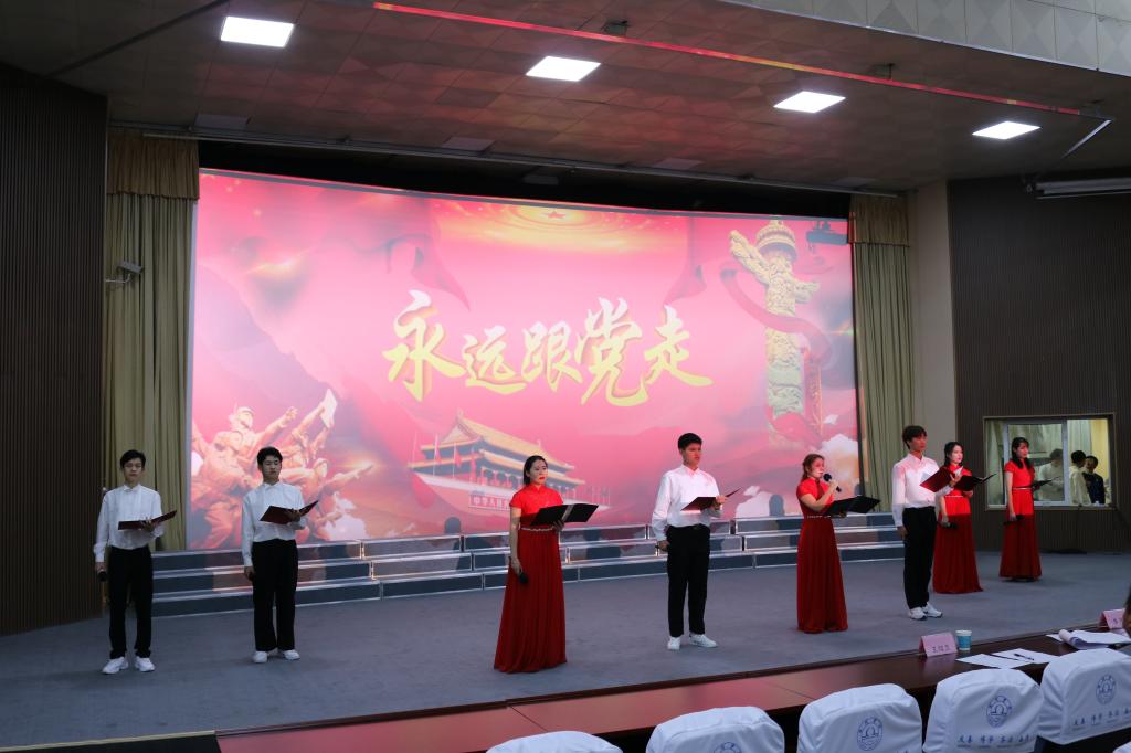 比赛经过各二级学院精心选拔,共有13组选手脱颖而出进入决赛,选手们用嘹亮的诵读声表达了对国家的热爱,对党的忠诚。声情并茂的《美丽中国》、《党旗飘飘》,感人肺腑的《永远跟党走》、《七月的天空》,铿锵有力慷慨激昂的《可爱的中国》、《党旗颂》、《号角者》等等,一篇篇经典作品伴随着悠扬婉转的音乐被选手们声情并茂、抑扬顿挫的吟诵着,一字一句间诉说着党的百年岁月,诉说着共产党人对革命的坚定和对生死的无畏,对建设美丽中国的期待和奋斗。一字一句间讲述了中国共产党从嘉兴红船到如今美丽中国的奋进历程,讲述了中国共产党人百年来英勇的战斗、谦虚的品德、不屈的精神。比赛现场气氛活跃,每到朗诵高潮处,掌声不断,在场师生身临其境,感受着百年奋进史中信仰的力量。比赛结束后,蔡若愚对本次比赛给予点评。在肯定活动意义和参赛作品的同时,从专业的角度对于朗诵时的普通话发音、语言文字、朗诵气息等方面进行了综合分析。最后他借用毛主席诗词“数风流人物,还看今朝”,勉励师生在经典诵读之路上昂首阔步向前行。