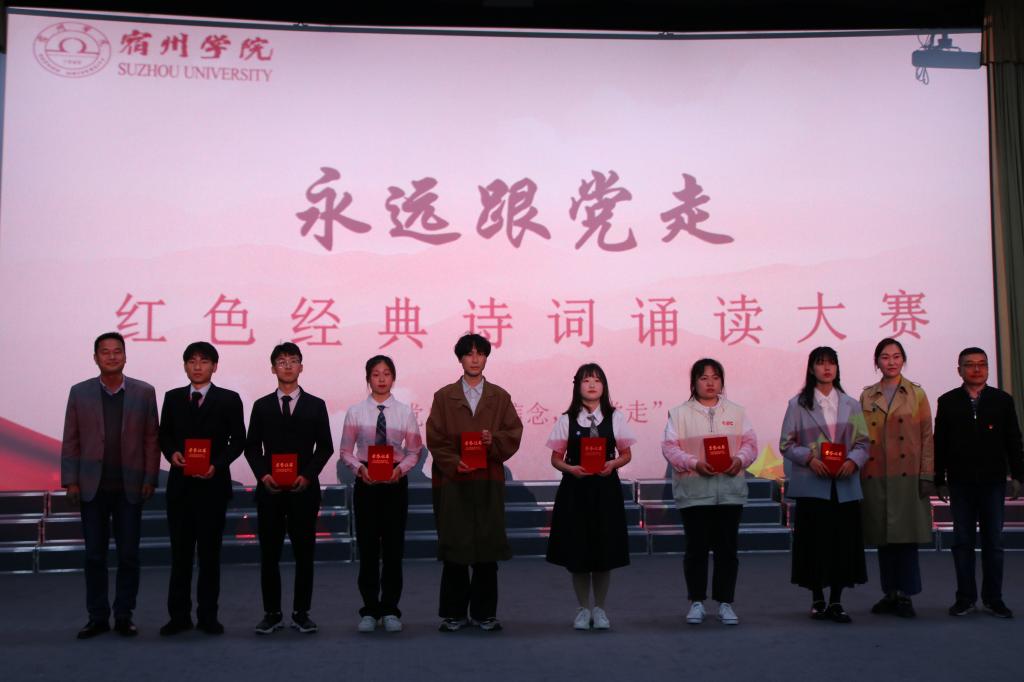 本次比赛是宿州学院党史学习教育活动重要内容之一,通过红色经典诗词诵读,丰富了广大师生党史学习的形式,激发了师生学党史、爱诵读的热情。用经典作品中的英雄故事和感人事迹,激发青年大学生树立远大的政治理想,践行社会主义核心价值观,为建设社会主义现代化强国贡献青春才华。