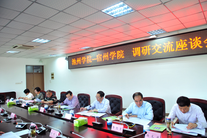 5月8日上午,池州学院党委书记孙晓峰、副院长汪贤才等一行7人到我院调研交流。我院党委书记汪刘送、院长张莉、副院长张英彦热情接待了其一行。院办公室、组织部、人事处、教务处、科技处、商学院领导参加座谈交流。