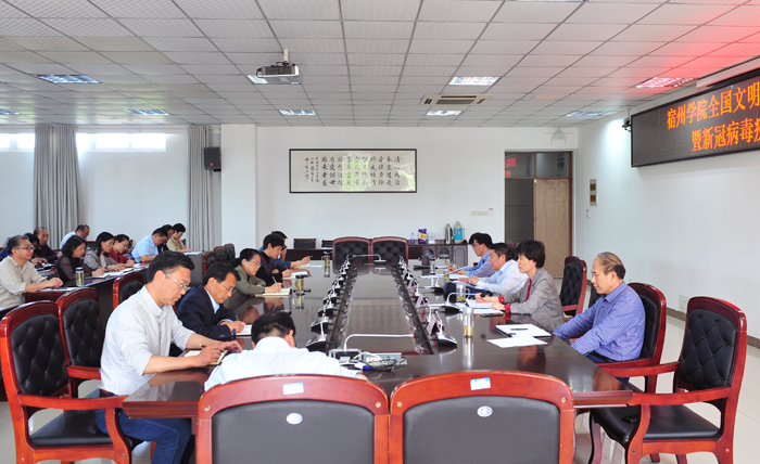 会上,院党委书记汪刘送传达了宿州市文明委扩大会议暨全国文明城市创建巩固提升推进会精神;党委副书记蔡之让就我院融入宿州市做好全国文明城市创建巩固提升工作及创建全国文明校园工作做了具体安排部署;后勤管理处处长周家华汇报了我院新冠病毒疫苗接种工作方案。