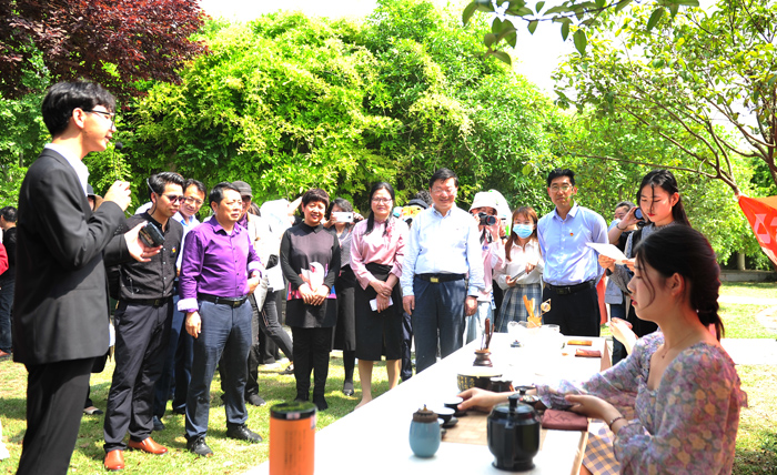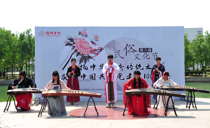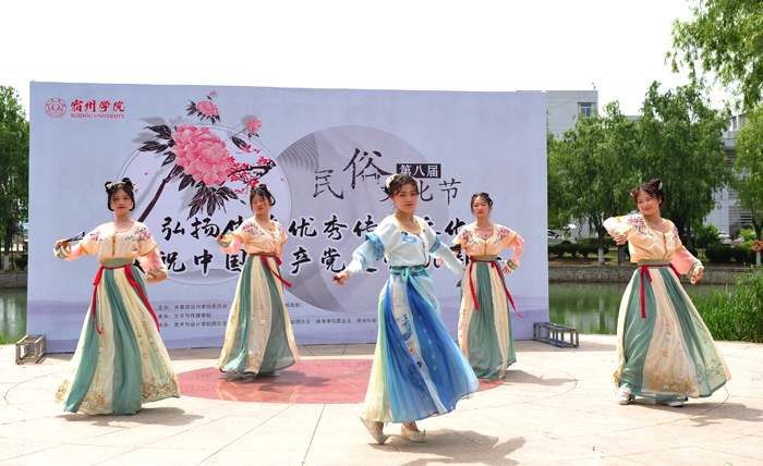 为弘扬中华优秀传统文化,庆祝中国共产党建党100周年,进一步加强当代大学生对中华优秀传统文化的认同感与归宿感,推进专业技能与传承弘扬民俗文化和红色文化有机融合,充分发挥第二课堂的实践育人功能,5月12日下午,宿州学院第八届民俗文化节在赛亭、珍珠湖畔隆重举行。校党委委员、副校长梁琦,党委宣传部、教务处、团委、学生处、质评处等职能部门负责人,体育学院、美术学院、管理学院、音乐学院及文学与传媒学院等二级学院党政主要负责人,相关专业老师参加此次活动。校党委委员、副校长张英彦作开幕式致辞。