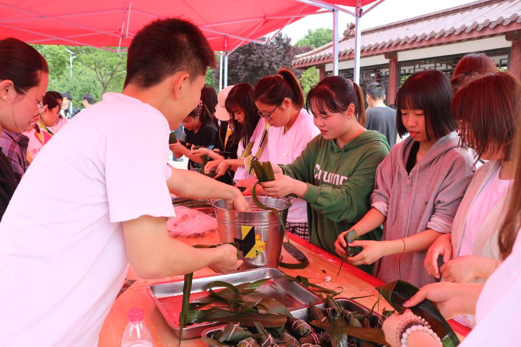 各类民俗活动,吸引了广大师生参与其中,其中72人参加了书法比赛,39人参加了绘画比赛,73人参加了竹竿舞游戏,丢沙包踢毽子共计200余人参加,泥塑、脸谱、剪纸共120人参加……同学们或参与游戏,或参与书画比赛,或向观众展示介绍文创产品,有动有静。赛亭中,珍珠湖畔,大家以饱满的热情参与其中,同学们积极的身影与古筝声、二胡声、长笛声融为一体,形成了一道美丽的风景线。
