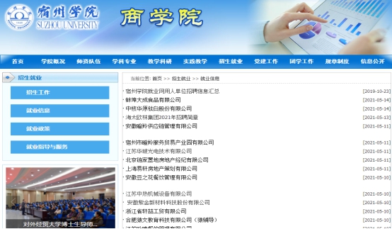 及时收集发布就业信息。本学期是毕业生求职重点时段,为了给毕业生提供更多的就业选择,商学院积极宣传国家、安徽省就业、创业、征兵等政策,及时联系“老关系”企业,积极拓展“新关系”企业,大量收集招聘信息,通过多种渠道及时向毕业生发布企业、事业单位、特岗教师、三支一扶等各类招聘信息100余条。