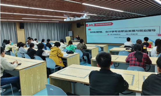 加强就业指导服务。在做好2021届毕业生就业服务的同时,商学院注重长远,积极关注和做好低年级学生就业指导工作。4月6日举办考研经验交流会,邀请已被南京财经大学税收政策分析专业录取的17级财务管理1班学生梁梦瑶,举办考研经验交流会,为低年级学生分享了考研心得,并进行了互动交流。4月29日,院长徐公伟教授举办了财务管理、会计学专业职业发展与就业指导讲座,介绍了近五年来商学院财务管理和会计学专业毕业生就业基本情况,分析和归纳了毕业生主要就业行业和岗位,分别从考研出国、金融行业、国有企业、行政事业单位和小微企业等五个方面对学生进行了职业规划和就业分类指导。